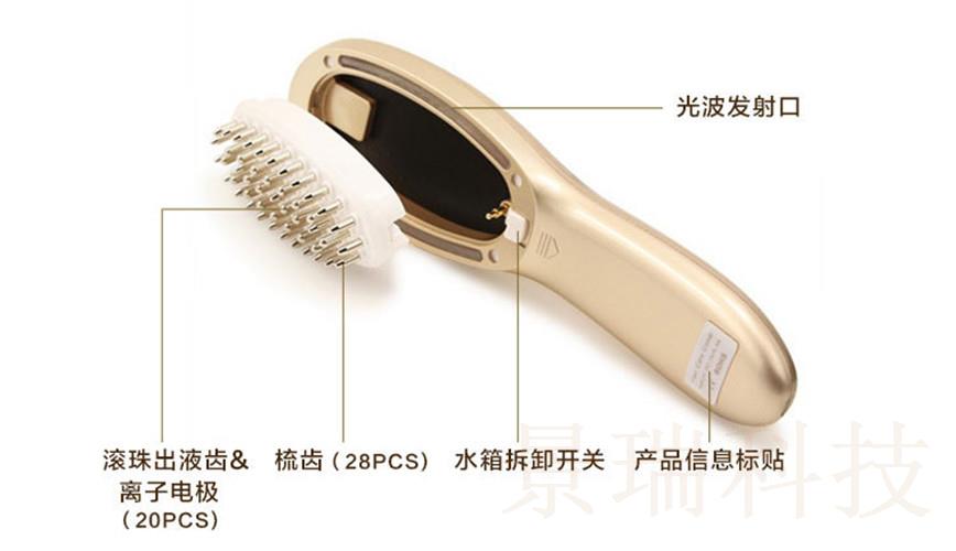导液梳的存在就完美的解决了此问题,它采用金属导液伸缩滚珠齿,将护发液装入齿箱,打开主机振动功能,正常按摩梳理头发,只有出液滚珠接触按压头皮才会出液,这样就可以让护发液直达头皮层,再配合导液梳的其它功能效果更好。